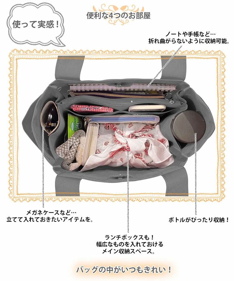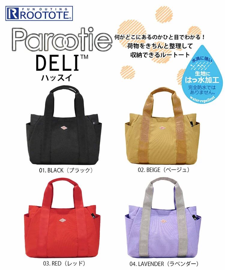 荷物をきちんと整理して収納できるルートート、Parootie(パルーティ)。バッグの中で散らかってしまいがちなアイテムを整理整頓。たっぷり荷物が入り、荷物の仕分けがしっかりできます。底マチが広く、ランチボックスなども入ります。撥水加工が施され、雨の日も晴れの日もデイリーに使える頼もしいトートです。