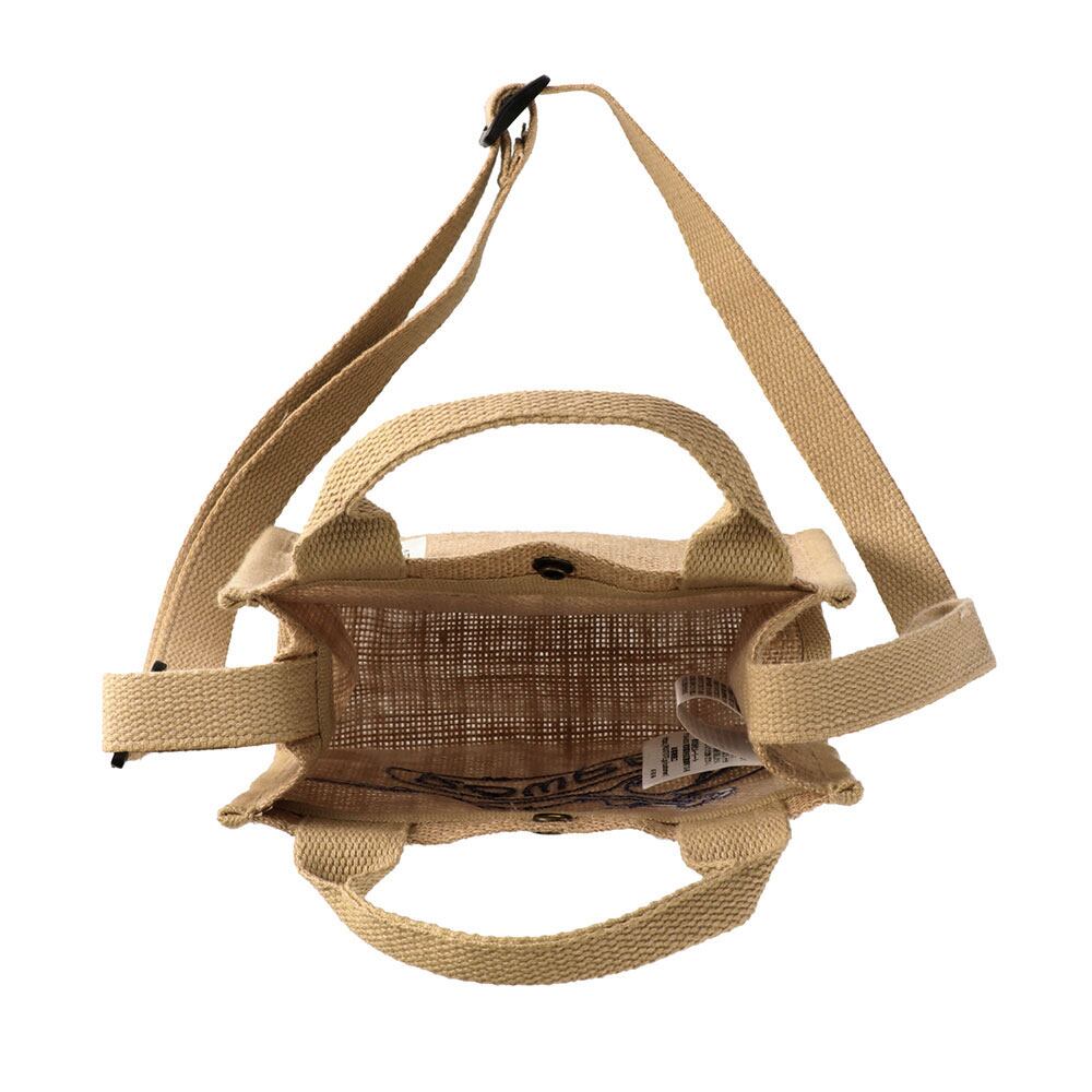 地球にやさしい素材、ジュート。裏面にラミネート加工を施すことで、軽さと硬さの両立。自立するトートバッグです。小さいながらも必要なものはしっかり収納。背面には片手でも取り出しやすいルーポケット付き。