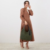 ・主な素材:分類外繊維(表地)/ポリエステル(裏地)/合成皮革(持ち手、チャーム)/ベルポーレン(底板)/マグネットホック(留め具)