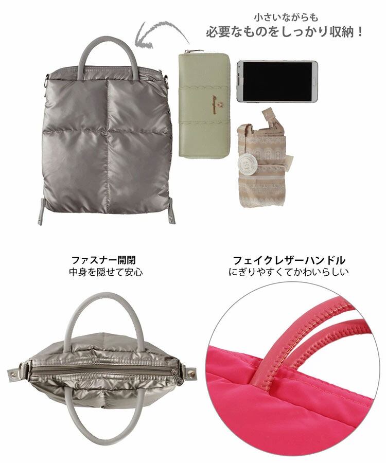 ・主な素材:ポリエステル(表地、裏地)/合成皮革(持ち手)/フェザー、ダウン(中綿)/ドットボタン