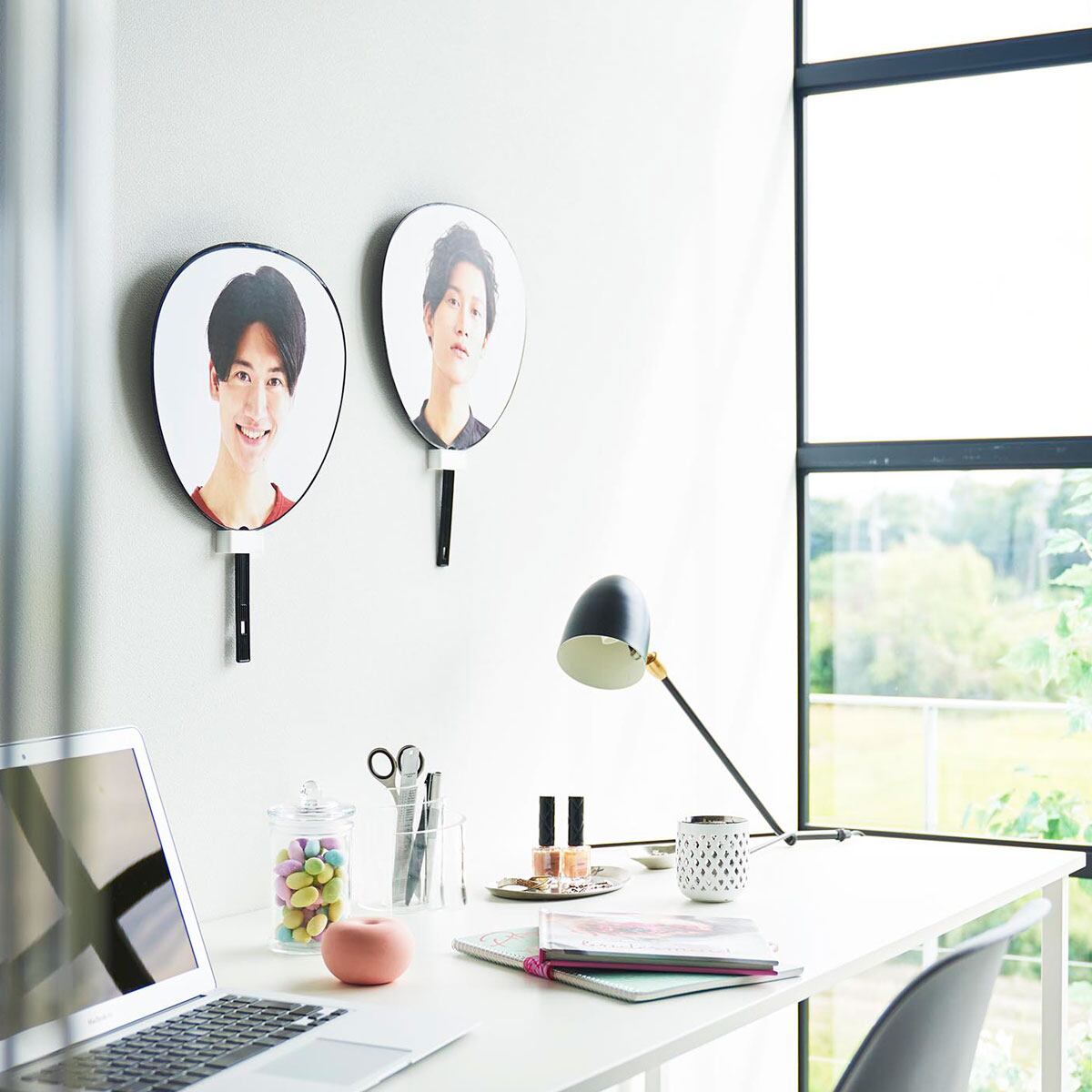 飾ることによっていつでも推しを眺められ、手にとれて便利。通常サイズのうちわの収納にも対応。石こうボードピンで壁の穴が目立ちにくく、木ネジでも設置可能です。
