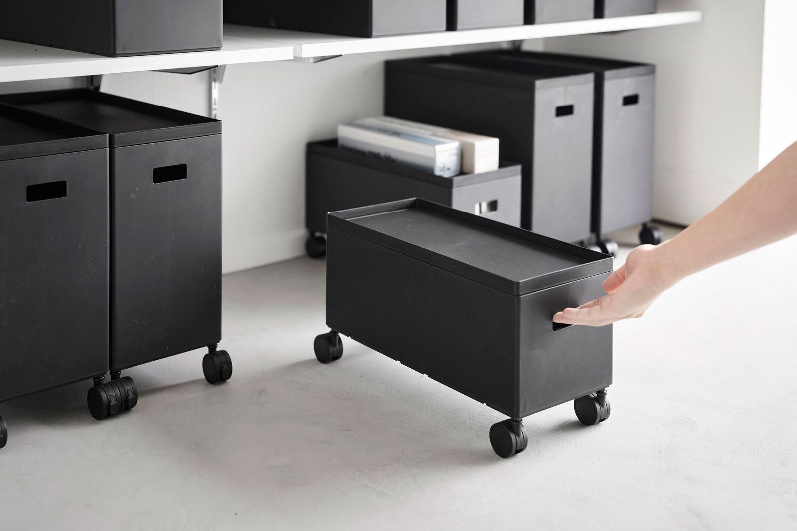 収納ワゴン キャスター付き 山崎実業 tower タワー 蓋付き収納ボックスワゴン S ブラック