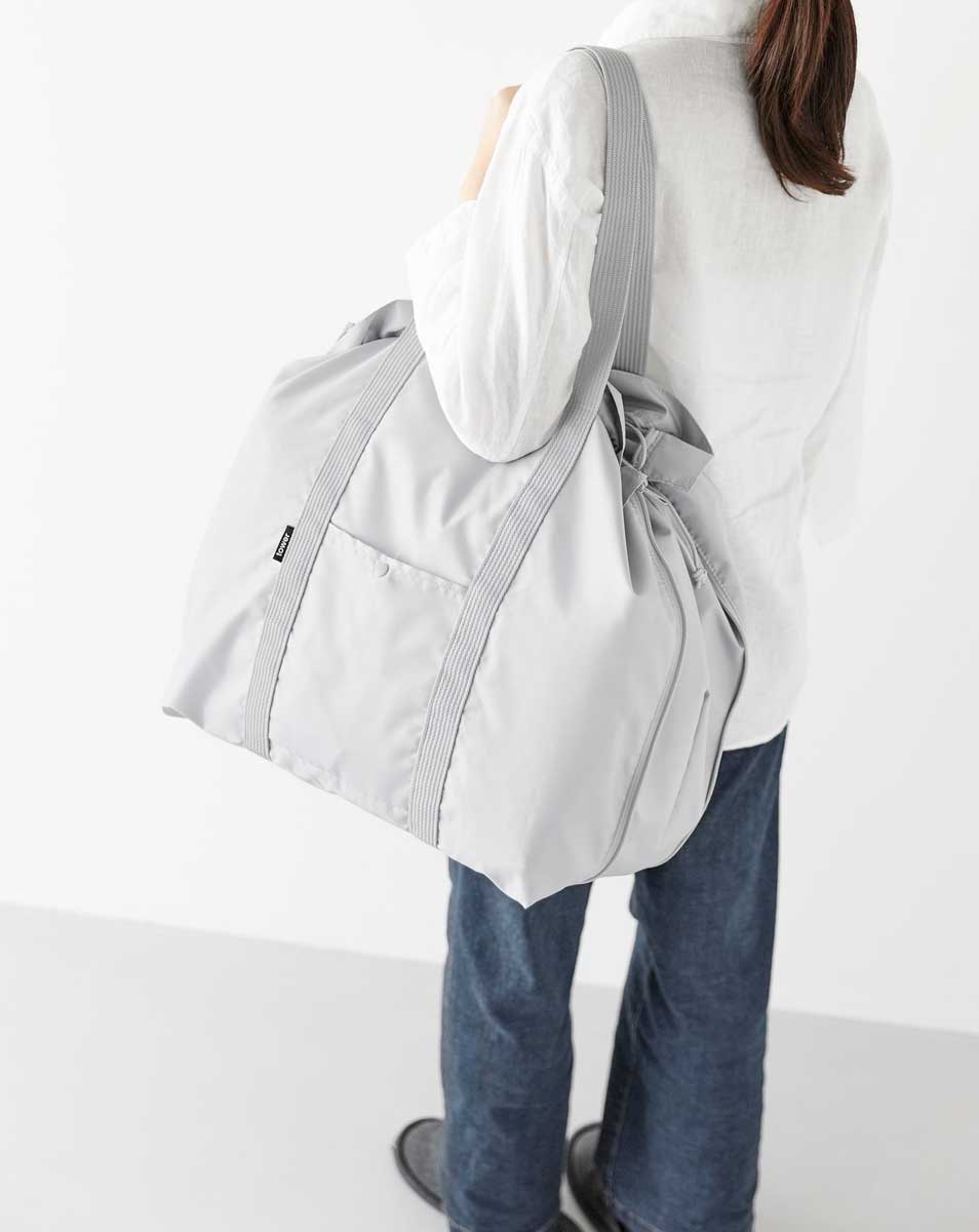 フレキシブルに使える保冷保温のエコバッグです。持ち手は肩掛けができる長さなので重たい荷物も楽に持ち運べます。中身の飛び出しを防止できる巾着タイプで、外側にポケットがあり使いやすく便利。使用しないときはコンパクトに折り畳めます。