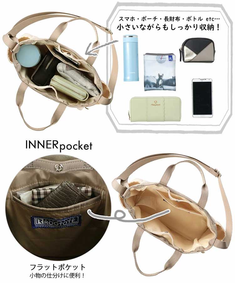 ポリエステル裏地で、汚れにくい。内ポケットもあって小物の仕分けに便利です。外側サイドにあるダブルポケットは、すぐに取り出したいスマホなどの収納に便利です。ファスナー付きのルーポケットには、かばんの中で迷子になりがちな鍵類などの貴重品も入れられて安心です。
